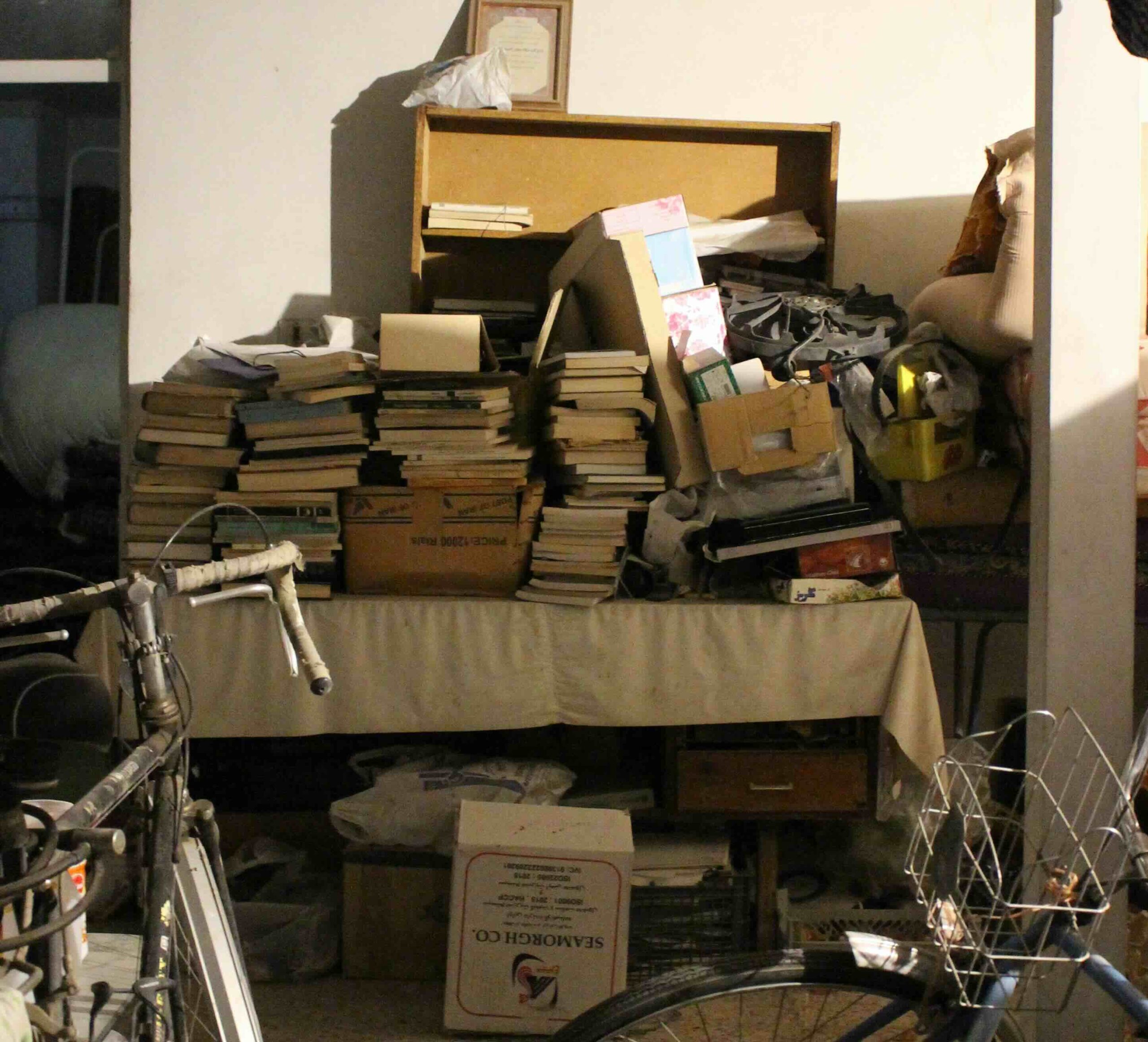 Notamment, retire tout ce qui peut directement être jeté : les chutes de bois moisies, les chaises de jardin cassées, les pots de peinture asséchée, les livres qui ont pris l’humidité.
